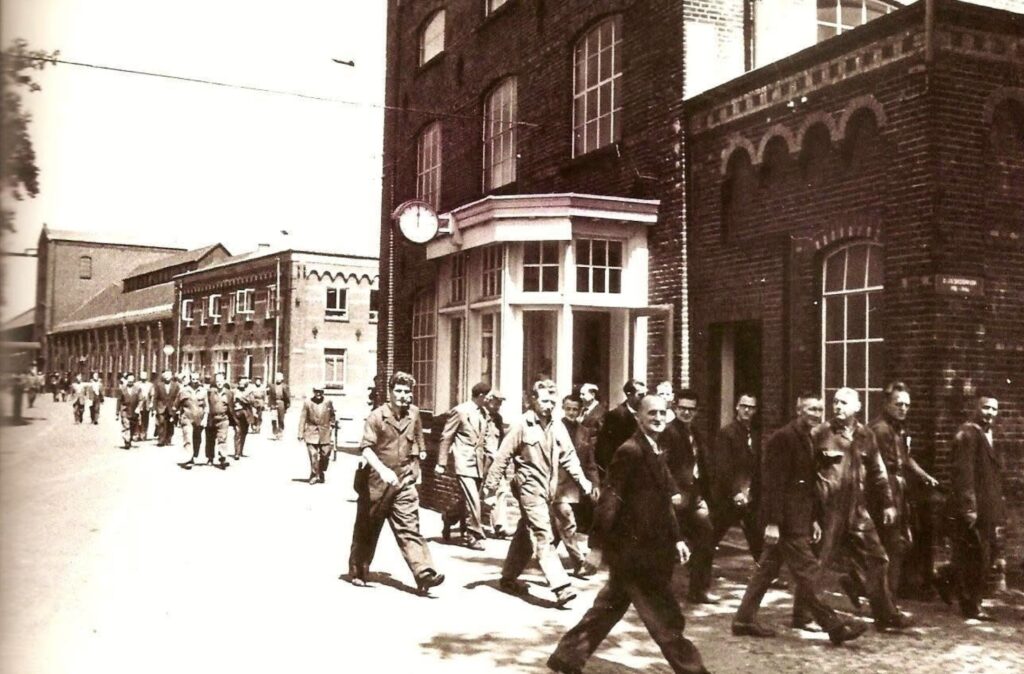 Het thema van een anonieme en massale groep marcherende fabrieksarbeiders die het werk verlaten is aan het begin van de twintigste eeuw regelmatig afgebeeld door meerdere kunstenaars.