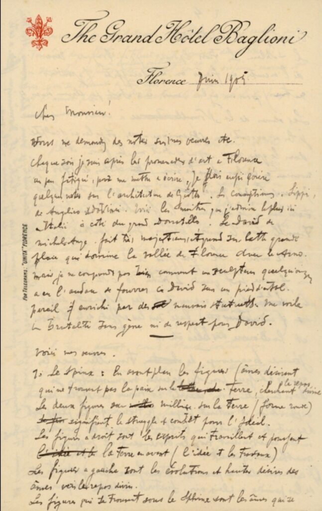 Toorop schreef in juni 1905 vanuit Florence aan de Italiaanse kunstcriticus Vittorio Pica (Biënnale Venetië) zijn beschrijving van o.a. zijn symbolistisch werk van de Sphinx.